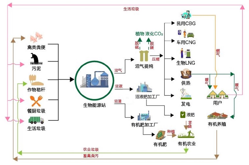 农业有机废弃物资源化利用大型沼气能源站流程图